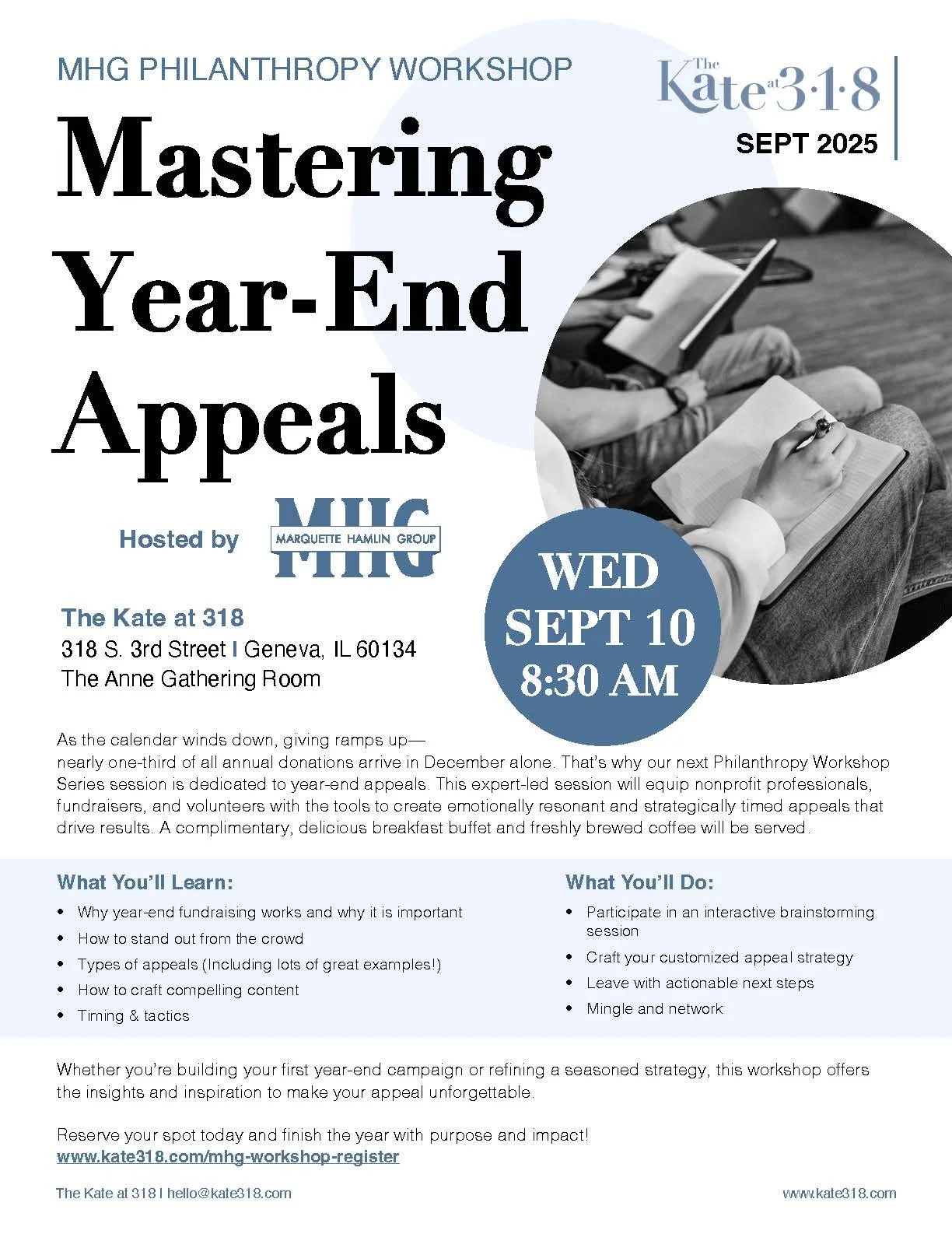As the calendar winds down, giving ramps up—nearly one-third of all annual donations arrive in December alone. That’s why our next Philanthropy Workshop Series session is dedicated to year-end appeals. This expert-led session will equip nonprofit professionals, fundraisers, and volunteers with the tools to create emotionally resonant and strategically timed appeals that drive results. A complimentary, delicious breakfast buffet and freshly brewed coffee will be served.